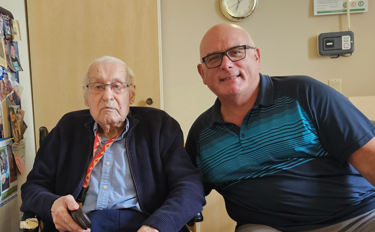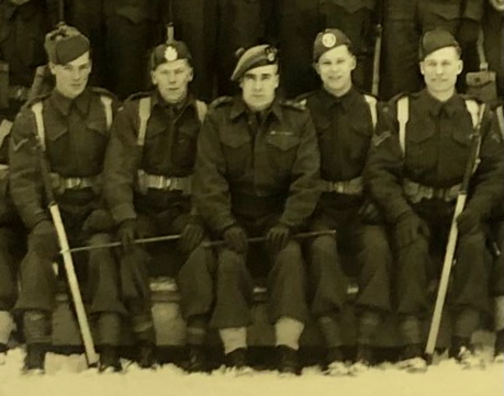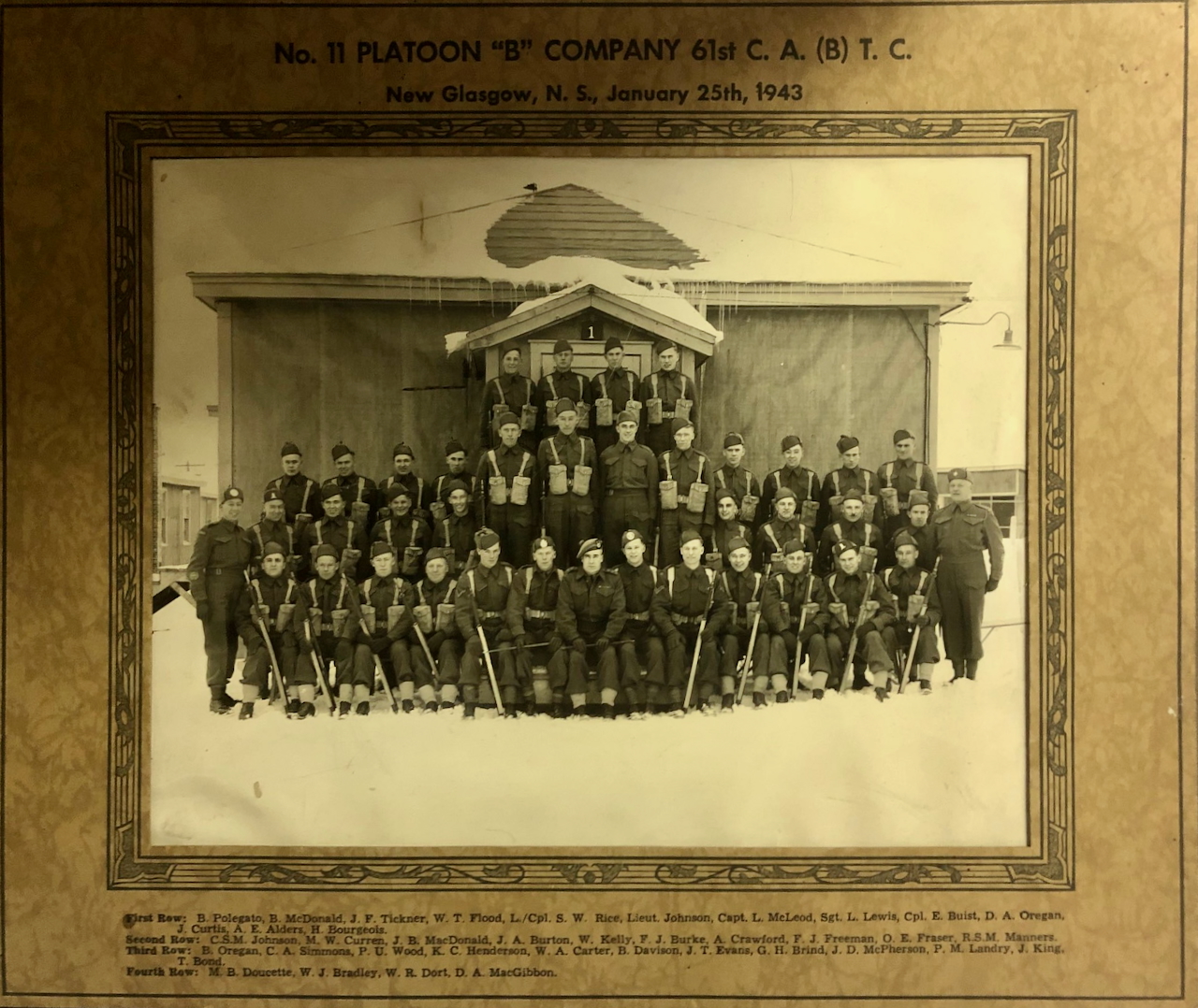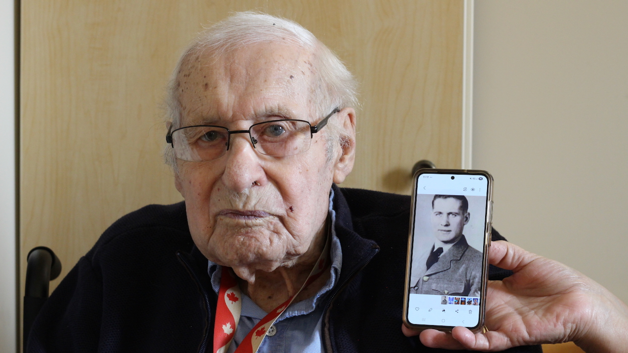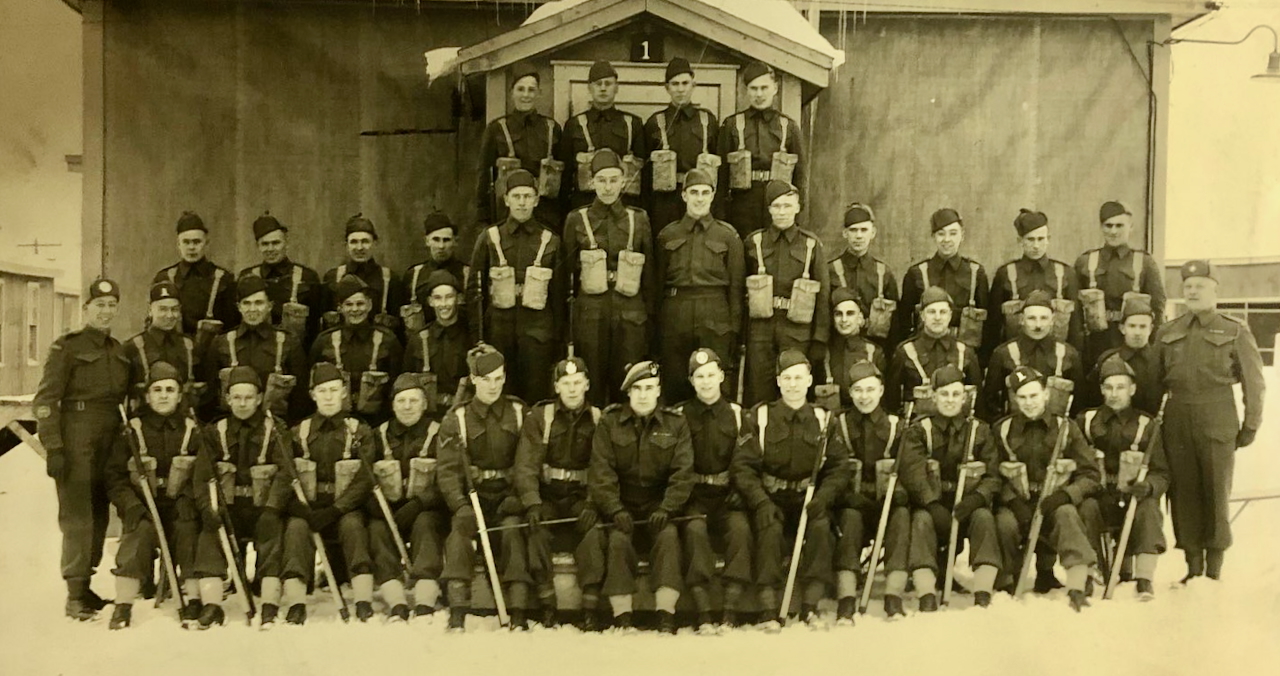 Ernie Buist was born May 17, 1918 in Sydney, Nova Scotia. He grew up on a farm outside town, with his two brothers and five sisters. Ernie left school after Grade 10 and worked a number of jobs before getting work at the steel plant. He was there when Canada went to war in 1939 and he was called up in 1941. Ernie went to New Glasgow for basic training before heading overseas. He was assigned to the North Shore Regiment, and his war began on June 6, 1944 when they participated in the D-Day invasion and the subsequent Battle of Normandy. Ernie would be grievously wounded in the battle for the Carpiquet airfield; his right leg was seriously damaged when he stepped on a landmine, and surgeons would have to amputate it above the knee. Ernie came very close to dying at this time: he first went to a field hospital in Normandy, and he was airlifted to England, where he was treated in part at Lady Astor’s estate. After several months he returned to Canada via hospital ship, and he was back home by the end of 1944. He received a prosthetic limb and began to adjust to the realities of his new life. Ernie worked with Veterans’ Affairs at first, later returning to the steel plant; he also built a house for himself, and soon he met his future wife Christine and started a family. Ernie Buist is a lifelong resident of Sydney, where Scott Masters interviewed him in July 2025 – when Ernie was 107!