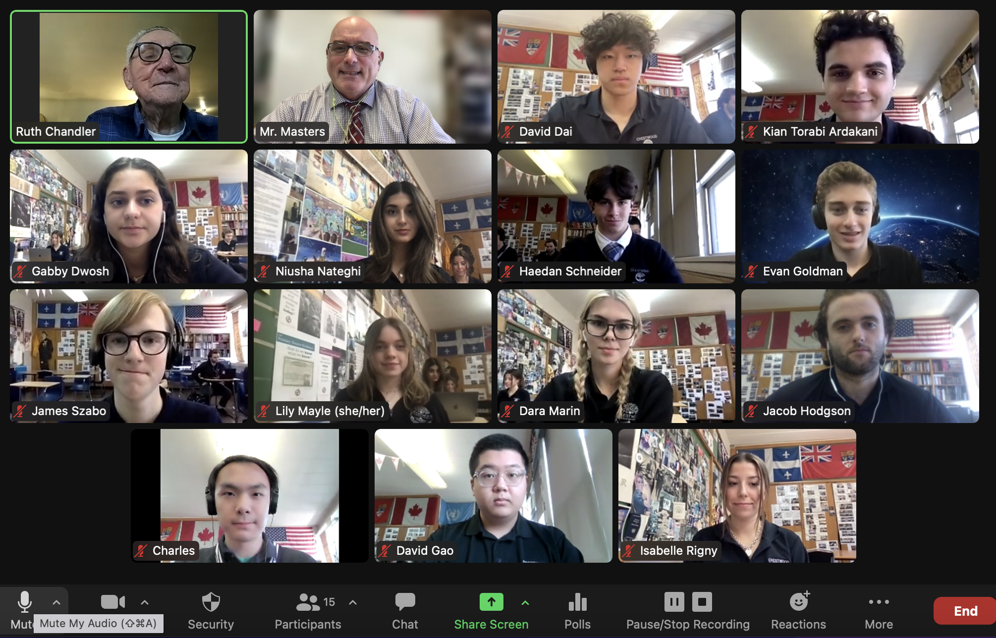 Leland Chandler was born on January 3, 1923 in Table Grove, Illinois. He grew up in a rural area, working the family farm and attending the local schools, swimming at the local river and playing ball when he was able. Leland grew up in the tough times of the 1930s, but he remembers the people in the community helping one another – they were all in the same boat afterall. Leland opted to join the military when he saw a friend of his wearing an army great coat: he did get that uniform and the coat, but he soon shipped to California and then the Philippines, where the winter uniform was not needed! He arrived in April 1941, and it was at the end of that year – December 7, 1941 – that the Japanese attacked Pearl Harbor, plunging the U.S. into the war. Leland was stationed at Corregidor when that happened and he and his fellow American and Filipino soldiers managed to hold off the Japanese for a few months, but they were outnumbered and ultimately forced to surrender, at which time Leland became a prisoner of the Japanese. He was held in the Philippines at first, and was later put on one of the infamous “hell ships” and sent to Formosa and ultimately onto Osaka, where he became a forced laborer at the Yodogawa Steel Works. The treatment was brutal, and Leland was reduced to a number – 385. He struggled to survive there for the next 31/2 years; Leland made it, but most of his fellow prisoners did not. Liberation finally came, and Leland returned to the U.S. via Hawaii. Six months of recovery in the hospital would follow, and the readjustment and nightmares continued after that. Leland married and started his family with his wife Ruth, and he became a firefighter and served his community, even managing to find forgiveness in his heart as he fell into the rhythms of postwar American life. Leland Chandler was interviewed via zoom in April 2022 by Mr. Masters’ Grade 12 History class.
