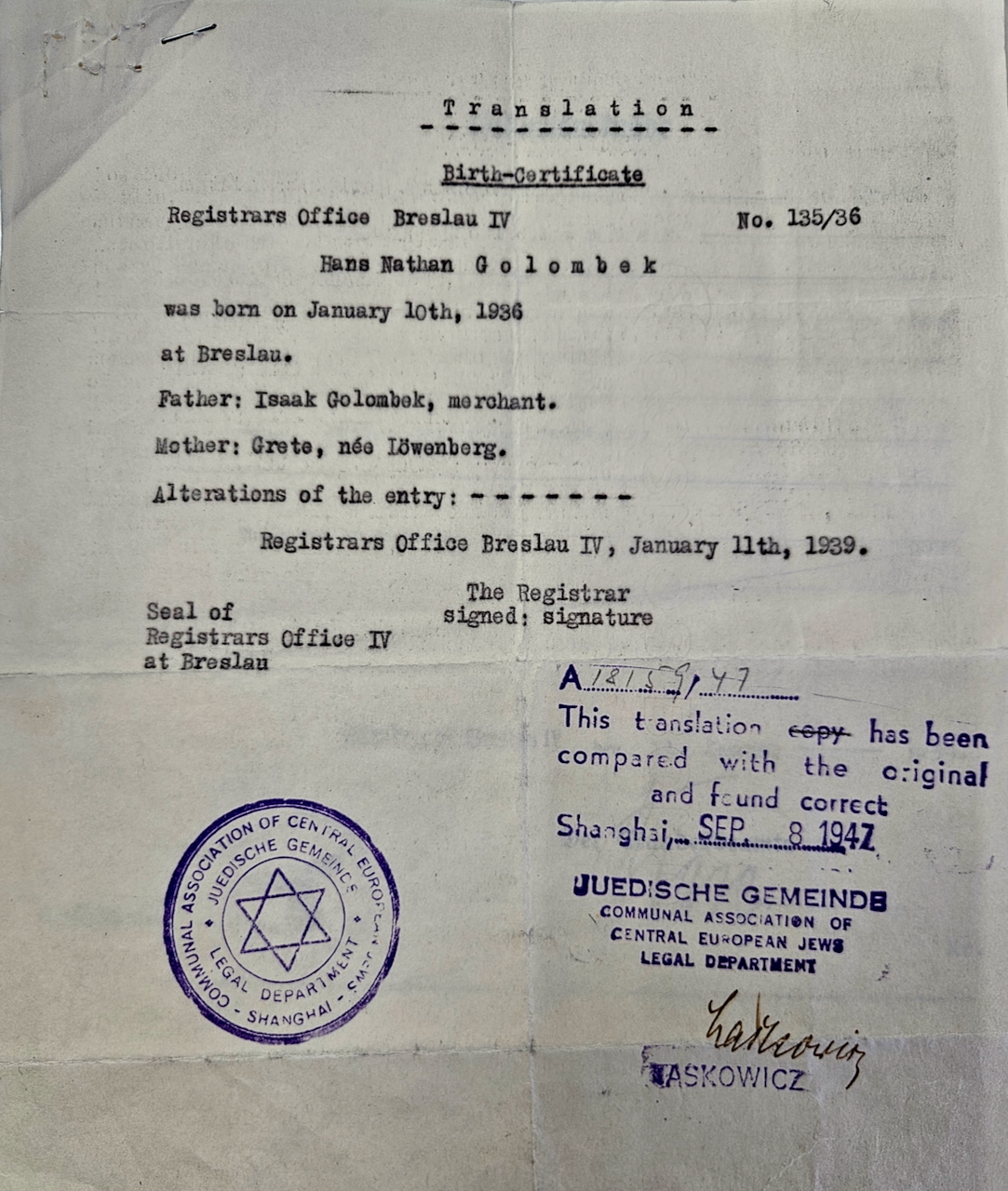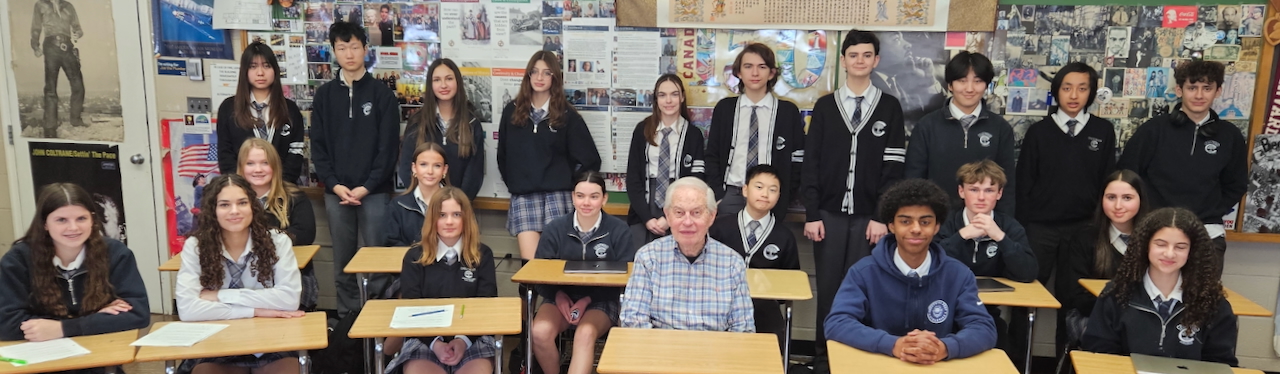 John Colomby was born January 10, 1936 in Breslau, Germany.  John was too young to remember any of the atrocities that befell his family before the war, but his older sister did remember them, as did his parents, and the story John tells here is built from their memories.  The family had been living a comfortable life in Breslau, with John’s father running a successful furrier business.  Nazi restrictions began to intrude on that as the 30s wore on, and with Kristallnacht in 1938 John’s father and grandfather were arrested and taken to Buchenwald.  John’s mother very courageously went to the Nazi headquarters in Breslau and demanded their release.  An officer relented and agreed to this, though it would take a month or more before they were released; the same officer also told John’s mother that they should leave Germany, and she began to make plans, settling upon the city of Shanghai as a destination.  John’s father did not want to go, but there were no other possibilities, so they purchased tickets and made the long ocean voyage.  Once in Shanghai, a Jewish Committee helped to settle them, and the family ended up in the slums of Hongkew, a sprawling neighbourhood they shared with impoverished Chinese, all the while under Japanese occupation.  John and his sister attended school, and did all the normal things that children would do, albeit in a very different and new environment.  They had to stay there for a time after the war as they were stateless; John recalls an uncle in New York did his best to get them out, and he eventually suggested that they try Canada instead.  They did that, and after a long arduous trip and a considerable period of time they arrived in Toronto in a snowstorm in January 1948.  They lived with family at first, gradually adapting to their new lives and circumstances.  John fit into his new neighbourhood well, and his cousins made the transition much easier; he began to attend school and was bar mitzvahed, and he was near the top of his class at Vaughn Road Collegiate.  He went on to a successful career in accounting, marrying and raising his own family.  John Colomby visited Crestwood in March 2025, where he shared history with Mr. Masters’ Grade 10 history class.