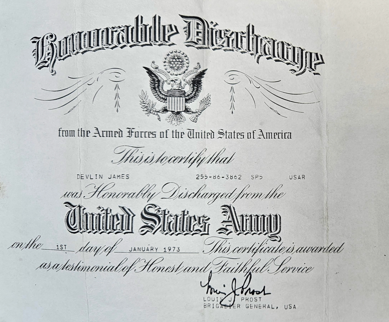 James “Jim” Devlin was born February 13, 1938 in Ireland. He grew up in Ulster, and he recalls the bigotry and hatred of those times: he was Catholic in a predominantly Protestant area. He came to Canada in 1954, eager to get away from those tensions and the economic circumstances of his homeland. Jim’s parents had previously lived in Canada – and he even had older siblings born in Canada and the U.S. – but Jim’s father returned to Ireland to care for his ailing father, and that’s when Jim and the younger siblings came along. Jim wasn’t much of a fan of school, so when he came to Canada at age 16 he went to work at Eaton’s, and he did other jobs up until he enlisted in the Canadian Army in 1961. Jim was in the Royal Canadian Regiment (RCRs), and he did an overseas deployment in Germany as part of Canada’s NATO obligation. During that time he was attached to the British Army of the Rhine, preparing for potential attack by the USSR via the Fulda Gap. Upon his return to Canada, Jim decided to head south and join the American Army – and to go to Vietnam. After training Jim was assigned to the 1st of the 1st Cavalry Regiment (D troop), which was the air cavalry component, and he was a door gunner on a scout helicopter. He arrived in Vietnam right after the Tet Offensive, during a time when the Vietcong and NVA forces had retreated to the jungle. Jim and his crew would scout them out, hoping to send in other units to engage them. Jim fulfilled his obligation to the American Army and would make his way back to Canada, where he and most other Canadian veterans did not feel welcomed home – many Canadians in fact resented their decision to go. For his part, Jim kept the story hidden for many years, sharing it only with family at first. He did share the story with Scott Masters and Zach Dunn, who interviewed him at Ajax Legion Branch # 322 in March 2025.