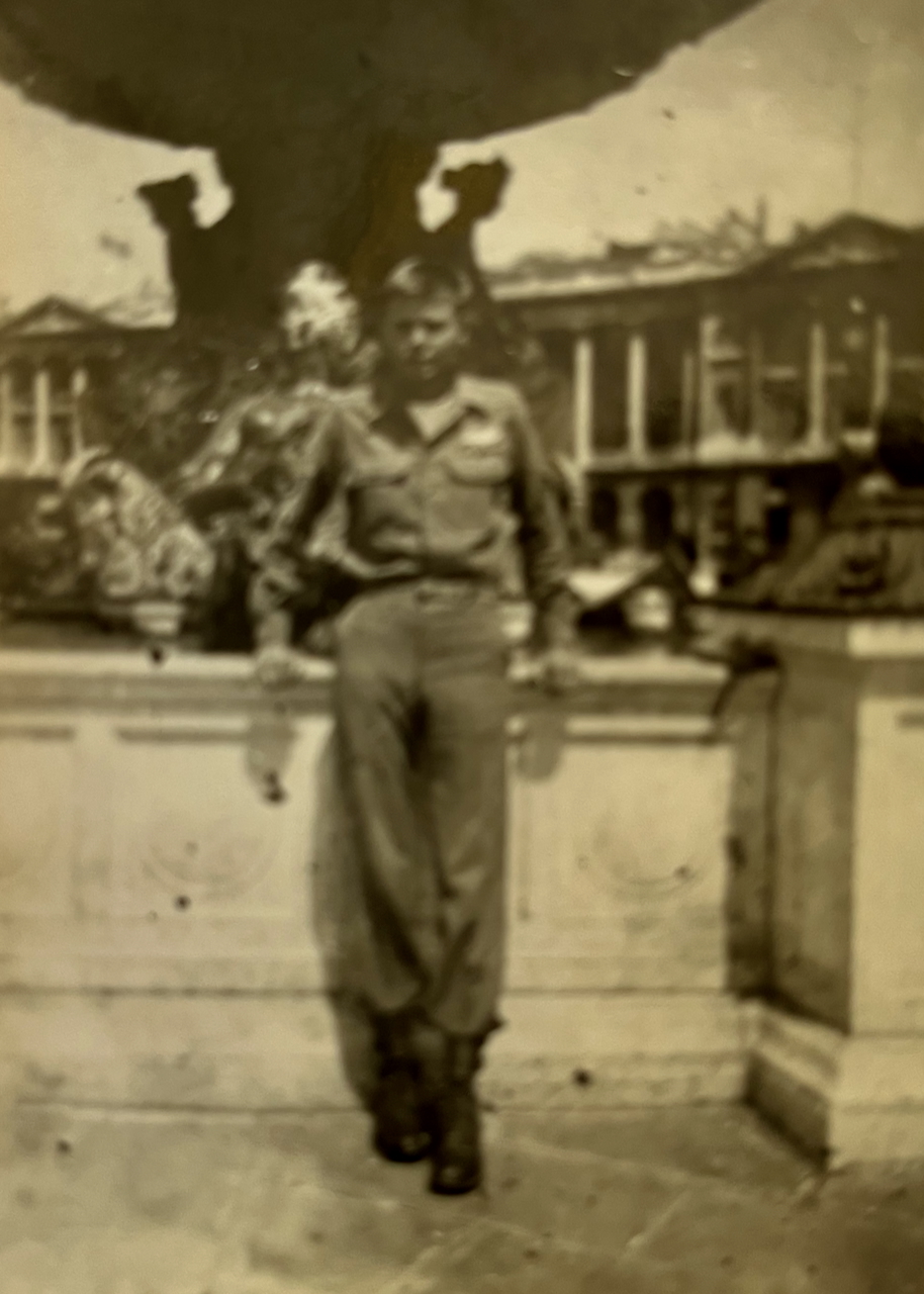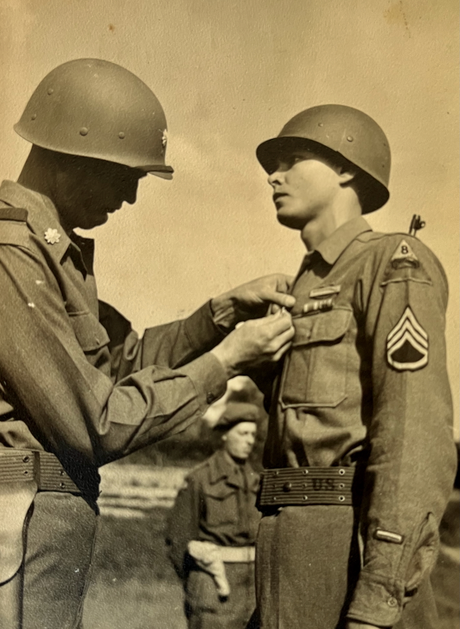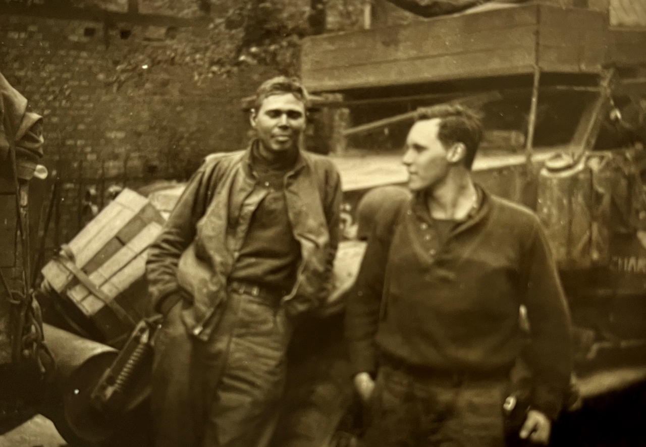 Russ Freeburg was born March 4, 1923 in Galesburg, Illinois. He grew up in the railroad town against the backdrop of the Great Depression, graduating from high school in 1941. Just a few months later Japan attacked Pearl Harbor, bringing the US into the war. Russ remembers that he and others saw the clouds of war forming; he was attending Knox College by that time and had enrolled in the ROTC. In February 1942 he enlisted in the Army Enlisted Reserve Corps, from which he would be called to duty in June 1943. He went through basic training at this time but was returned to university until March 1944, when he was assigned to the 8th Armored Division, 49th Armored Infantry Battalion, C Company. They headed to England on the HMS Samaria, and once there they were stationed on the Salisbury Plain. Russ was a Staff Sergeant and a squad leader at this time, as he was when they were shipped over to France. The Battle of the Bulge was underway by this time, so they crossed France and were stationed on the Metz front. After the Bulge wound down, they were transferred from the 3rd to the 9th Army and moved to the northern front and stationed in southern Holland. The crossing of the Rhine and Ruhr rivers followed in short order as Russ and the rest of the 9th moved into Germany. They became involved in the Battle of the Ruhr Pocket and encountered significant German resistance in a number of locales. All the while they continued to move east and at war’s end Russ was in Czechoslovakia not too far from the Russian lines. The move to the west began soon after, as the men made their way back through Germany to the “cigarette camps” in France, and then onto the ships that would take them home. Home for Russ meant a few army camps at first, to be followed by his discharge in February 1946. During this time Russ married and began his journalism career, first as a reporter at the City News Bureau of Chicago. He then joined the Chicago Tribune in 1950 and stayed there the next seven years, followed by a 1958 move to Washington D.C. to cover the Justice Department and the White House. He was named the executive director of the Tribune‘s Washington bureau in 1966 and he rounded out his career by serving as the Tribune’s managing editor for a year. Freeburg co-authored Oil & War with Robert Goralski of NBC News, which was published in 1987. He was interviewed over zoom by Scott Masters and Zach Dunn in January 2025.