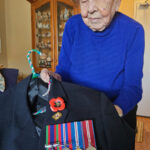 Una Golding (nee Sinclair) was born September 27, 1926 in Fairford, Manitoba. She grew up in that small farming community, where she was raised by her mother and grandfather. Una recalls going to a one room schoolhouse in her small town; to go to high school she would have had to go to Winnipeg, which she did not want to do, instead electing to work on a nearby farm. Food was always around on the farm, and Una does not recall the Great Depression as having too much of an impact on her in those years. She does recall learning about the war as she worked on that farm from 1942-44, and seeing the flying schools that began to dot the Prairies countryside. When Una turned 18 she joined up right away, going into the Canadian Women’s Army Corps (CWACs). She reported for training and after a short period in Kitchener and Ottawa she was sent to Quebec City, where she worked as part of the Royal Canadian Ordnance Corps, sorting uniforms and doing office work. She was there when VE Day was announced, and Una like many others volunteered to do her part in the ongoing war against Japan, but the atomic bombs obviated that possibility. She met a young man named Alan during this time, and the two of them struck up a romance and married. Alan chose to stay in the military and together the two of them began an odyssey across Canada as they were posted on a variety of bases. They also did an overseas stint in West Germany during the difficult years of the Cold War. Una and Alan raised their family and Una remained active in the community, heavily involved in the Legion and volunteering for a host of organizations, all the while promoting a strong civic spirit and an ideal of remembrance. Una Golding was interviewed by Scott Masters at her home in Peterborough in February 2025.