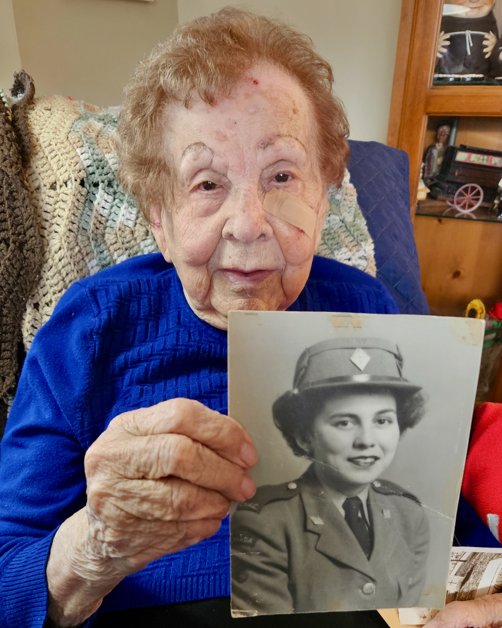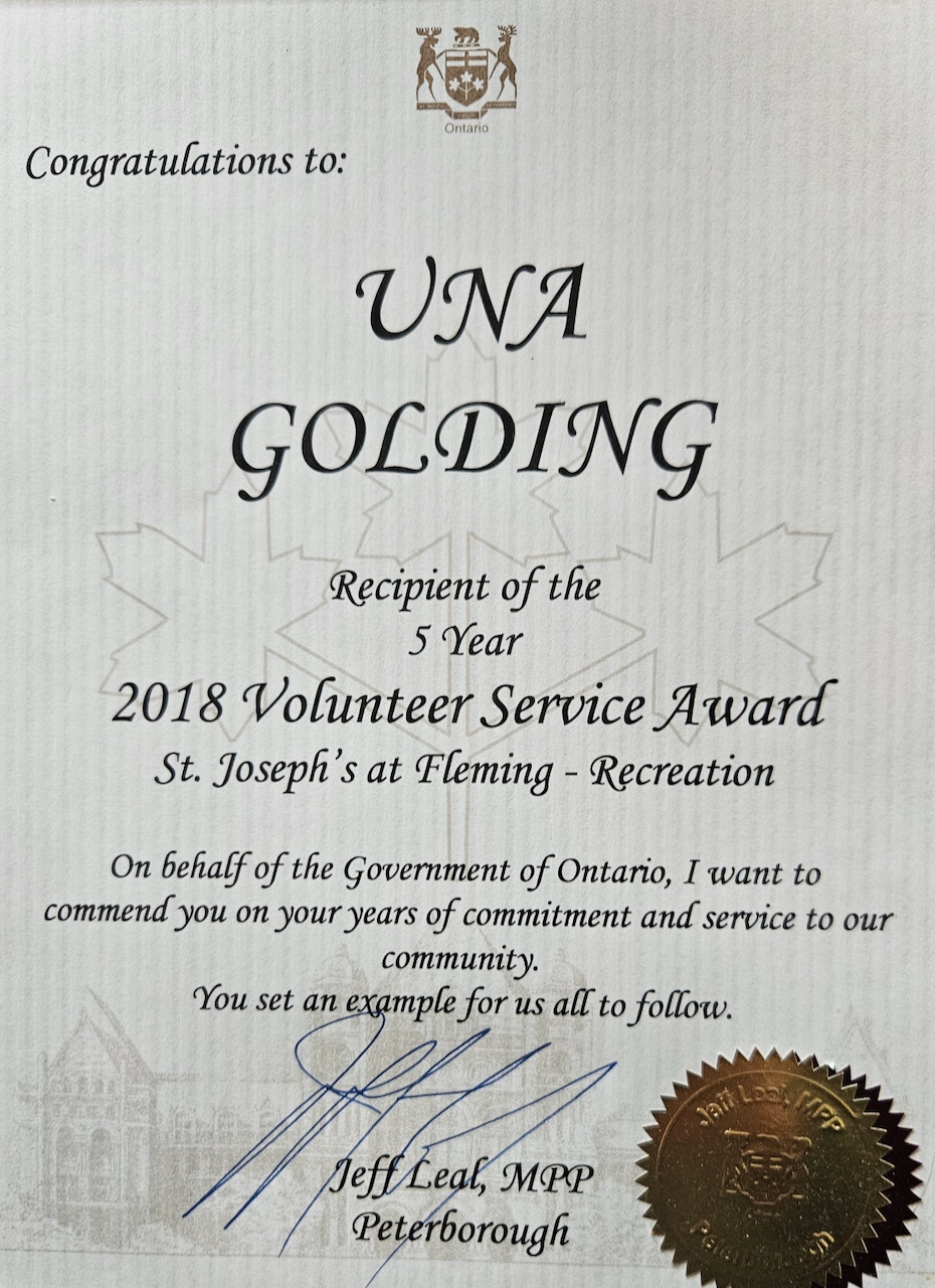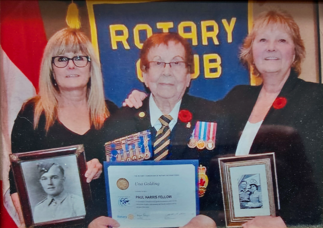 Una Golding (nee Sinclair) was born September 27, 1926 in Fairford, Manitoba. She grew up in that small farming community, where she was raised by her mother and grandfather. Una recalls going to a one room schoolhouse in her small town; to go to high school she would have had to go to Winnipeg, which she did not want to do, instead electing to work on a nearby farm. Food was always around on the farm, and Una does not recall the Great Depression as having too much of an impact on her in those years. She does recall learning about the war as she worked on that farm from 1942-44, and seeing the flying schools that began to dot the Prairies countryside. When Una turned 18 she joined up right away, going into the Canadian Women’s Army Corps (CWACs). She reported for training and after a short period in Kitchener and Ottawa she was sent to Quebec City, where she worked as part of the Royal Canadian Ordnance Corps, sorting uniforms and doing office work. She was there when VE Day was announced, and Una like many others volunteered to do her part in the ongoing war against Japan, but the atomic bombs obviated that possibility. She met a young man named Alan during this time, and the two of them struck up a romance and married. Alan chose to stay in the military and together the two of them began an odyssey across Canada as they were posted on a variety of bases. They also did an overseas stint in West Germany during the difficult years of the Cold War. Una and Alan raised their family and Una remained active in the community, heavily involved in the Legion and volunteering for a host of organizations, all the while promoting a strong civic spirit and an ideal of remembrance. Una Golding was interviewed by Scott Masters at her home in Peterborough in February 2025.