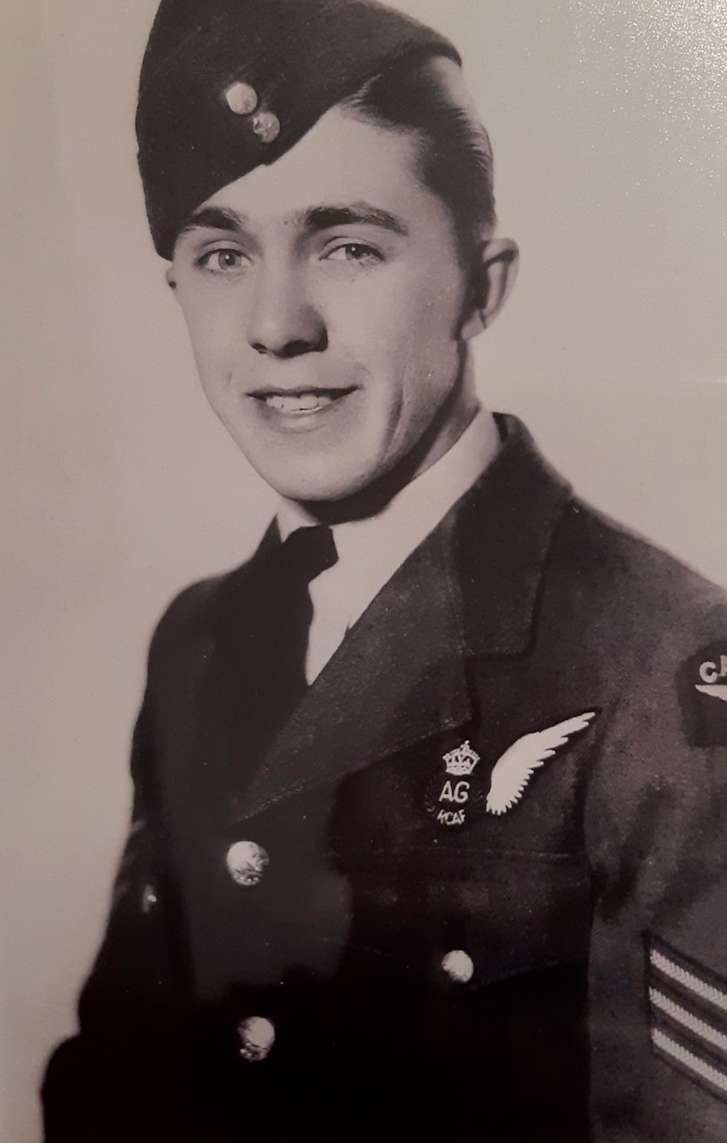 Arnold Graham was born December 12, 1925 in Lakefield, Ontario. He grew up in a large family: there were 12 children, and Arnold was the youngest. Arnold grew up against the backdrop of the Great Depression; life was tough for the family, especially when Arnold’s father died. His older siblings and his mother managed to get the family through those hard times though. When the war came, Arnold was in Timmins with his older brothers, but he returned to Lakefield and went back to high school, where he made it through Grade 10. By that time six of Arnold’s brothers had joined up, and he wanted to go and fight with them. His mother reluctantly agreed to let him go, signing his letter when he was 17. Arnold went off to Manning Depot, and then on to the British Commonwealth Air Training Plan schools in Quebec, where he earned his wings as an air gunner. A very colourfully remembered troop ship journey followed; glad to be on firm ground again, Arnold boarded a train and headed for Bournemouth, soon to be followed by a stint flying Wellingtons in OTU. By now Arnold had crewed up, and they were assigned to 433 Squadron, where they flew Lancasters and Arnold was either mid-upper gunner or tailgunner. Arnold flew 19 combat missions, enduring the flak, the cold, and the German fighters – which included an Me262 on one mission! On mission #19 Arnold’s luck ran out when his Lancaster was shot down on a mission over northern Italy; he was captured and held in a German prison camp for a short time. The Americans liberated him in short order, and he was sent up to the coast, and over to England. It was during this time that the war came to an end, and Arnold returned home on the Ile de France, going home to his family in Lakefield. There he and his brothers fell back into the rhythms of civilian life, making their way in postwar Canada. Arnold Graham was interviewed at his home in Lakefield in August 2022 by Scott Masters.