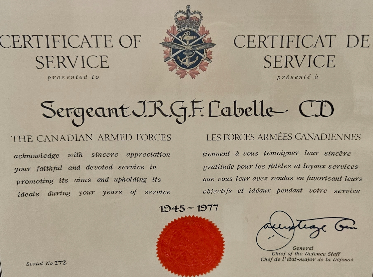 Felix Labelle was born May 27, 1927 in Montreal, where he grew up in the Outremont neighbourhood, speaking both French and English. Felix attended a boarding school in St-Vincent-de-Paul, and near the end of the war as a 17-year-old he began to look for work in war industry. Not finding anything to his liking Felix enlisted in the army and went into training. The war was winding down by that time, and Felix learned of the news while at dinner at his camp. He and the other young men were soon discharged, though Felix chose to rejoin the reserves after the war. An ad in the paper alerted him to this possibility, and he was intrigued by the Intelligence Corps especially. The Cold War was underway by this time, and Felix’s task in the intelligence corps was to have conversations and interviews with people when he was directed to do so. Felix served overseas in West Germany for a time, and he was stationed at Lahr as part of Canada’s NATO contingent. Part of Felix’s job was to be on the lookout for Soviet espionage activity, and to interact with Canada’s NATO allies. Felix was there for 5 years, and on his return to Canada he was involved in security clearance checks, ensuring the good conduct of those in government and military service. Felix Labelle was interviewed by Scott Masters at his home in Ste-Anne-de-Bellevue, Quebec in October 2025.