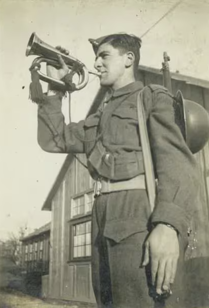 Tony Mastromatteo was born May 15, 1921 in Toronto, where he grew up on Wellington St. in a family of 12 children. Tony’s parents had emigrated from Italy, looking for better opportunities, but the fact that Italy was in the war didn’t bother Tony: he said he was Canadian and he had no doubts about going into the army when the war came. Tony enlisted in 1940 in Hamilton with the Dufferin and Haldimand Rifles of Canada, and he went into basic training. Training took him across the country and on the west coast he met Mary, and the two of them decided to marry before he headed overseas. In 1943 Tony was reassigned to the Argyll and Sutherland Highlanders regiment, and they headed for New Brunswick, boarded the Queen Elizabeth and arrived in Gourick, Scotland, on July 27. The battalion moved to Riddlesworth Camp in October, and all the while they were training and marching – and readying for the inevitable invasion. In those early days overseas Tony learned that he was a father! He was also assigned to the Argylls’ scout platoon at this time, and reconnaissance would become his specialty. Tony disembarked in France with the Scouts on July 22, 1944. They did not move to the front right away, but they saw the signs of war everywhere, especially the sight of the destruction of Caen. Once into the fray, Tony recalls that they did well, and they achieved particular success in the taking of Hill 195 in early August. The Battle for Normandy wound to a bloody but victorious conclusion for the Allies, and Tony and the Argylls continued their move to the northeast, into Belgium and Holland. In Holland Tony was seriously wounded and that would prove to be the end of his war. He eventually made his way home to his young wife and child, and he found his way in the new rhythms of civilian life in postwar Toronto. Tony Mastromatteo was interviewed by Scott Masters and Zach Dunn at the Sunnybrook Veterans’ Wing in June 2025.