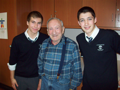 Crestwood students Kyle Seigel and Chase Farbstein spoke to Michael at Baycrest’s Cafe Europa in early 2010.