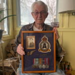 Jack C. Thomas was born on June 4, 1923, in Blenheim, Ontario, where he grew up in a family of 7.  Jack’s early life was tough and he quit school and started at construction and factory work. Well aware of the war in Europe Jack was eager to join, particularly the RCAF (Royal Canadian Air Force); he already had an older brother in the service, so he joined up when he turned 18.  After basic training, he was sent to Lachine, Quebec then to Mont Joli Quebec, where he took a gunnery course and was promoted to sergeant. From there, Jack was sent “overseas” to Newfoundland to complete the rest of his training.  On July 1, 1942 Jack was shipped off to Europe on a troop ship. They landed in Liverpool, England and then transferred over to Bournemouth. Jack completed some additional training before being finally assigned to a squadron. He was attached to RAF 190 Squadron, where Jack was a tail gunner on Short Stirling four engine planes, with a 4 man crew. Jack’s missions and objectives were quite unique; instead of dropping bombs over Germany, Jack and the crew were dropping supplies to the French and Spanish Resistance, helping the local population and fellow downed airmen. But a first real taste of combat came in their next 4 missions, flown in support of D-Day. On June 5, 1944, their mission was to drop 25 British paratroopers into France to take and hold a bridge; this drop was successful. In the fall of 1944 more danger ensued as they endured heavy flak during the next 3 missions, flown as part of the Battle of Arnhem.  On one of those missions their plane was hit, and Jack had to bail out.  He was seriously injured on his landing, and he and the flight engineer surrendered to German troops. He initially spent time in hospital, and was later sent to Dulag Luft for interrogation. After that, Jack was then transferred to a stalag, where he was given a job of handing out the daily food to the soldiers. Jack’s camp was liberated by American troops in the spring of 1945, and he returned to England via hospital ship, where he recovered from all he had been through.  He was then able to return to Canada and to find his way in the rhythms of civilian life.  Jack Thomas was interviewed by Zach Dunn of Global Veterans Stories in January 2025, and Zach was kind enough to share this story with Crestwood.  Zach’s other work can be accessed at https://www.rememberingcanadasveterans.com/.