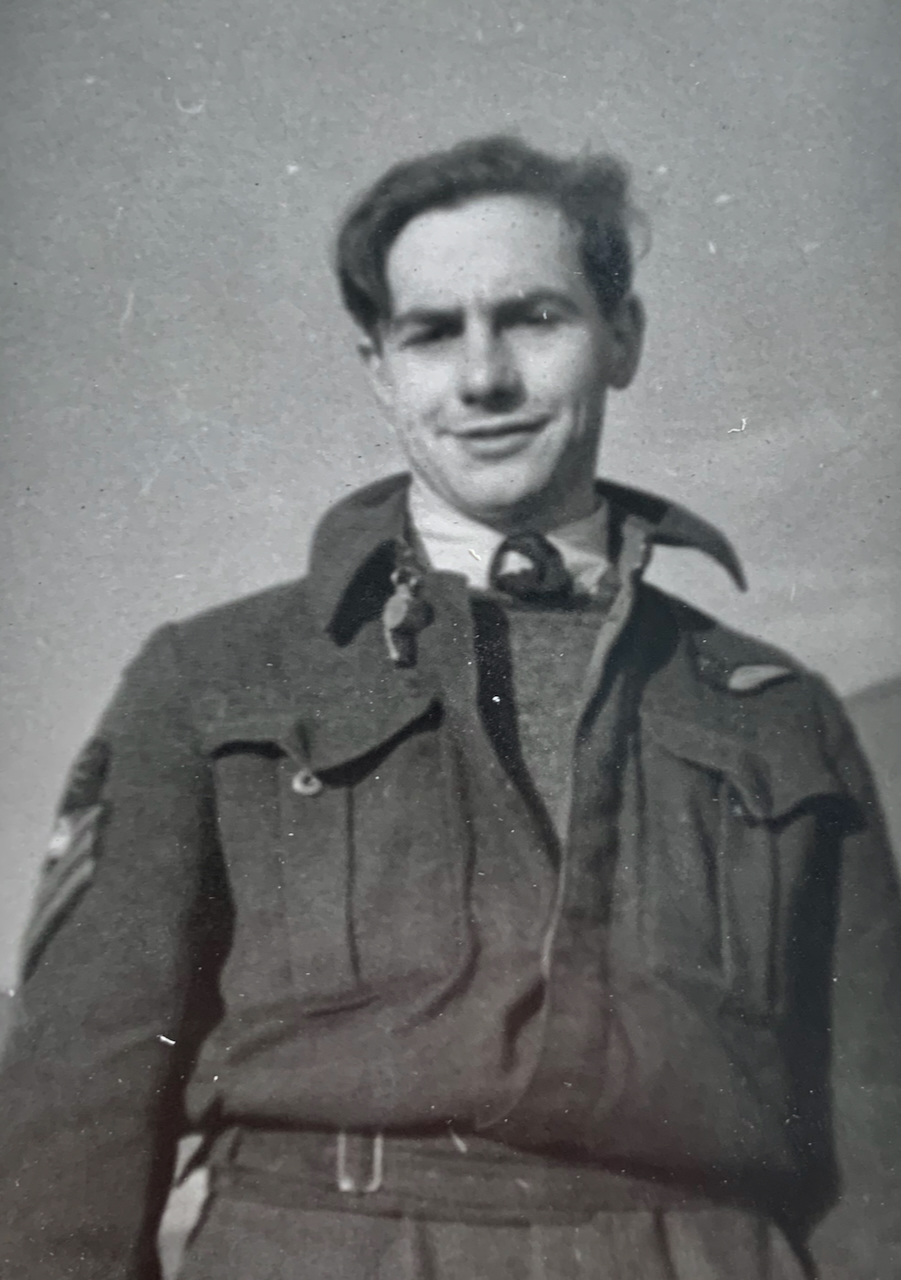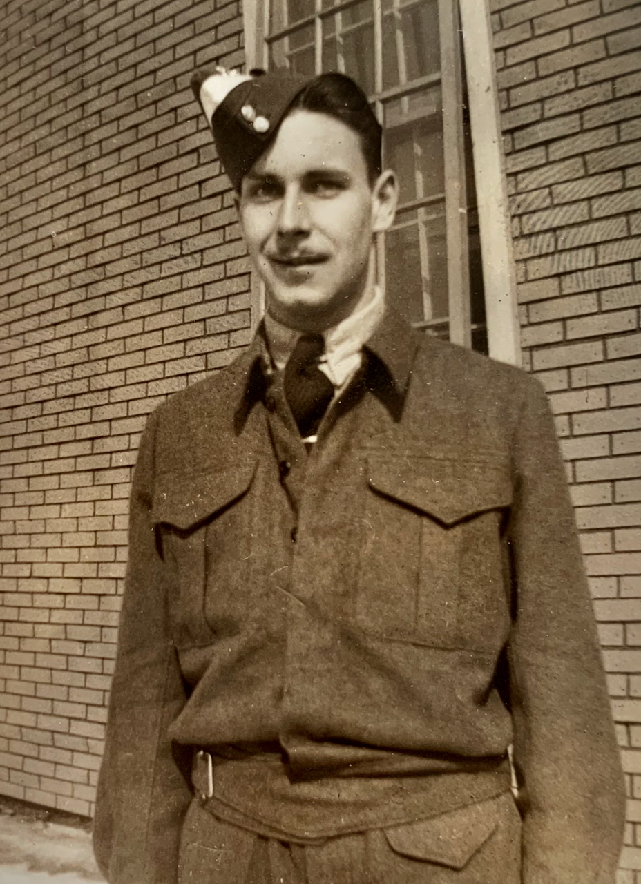 Jack C. Thomas was born on June 4, 1923, in Blenheim, Ontario, where he grew up in a family of 7.  Jack’s early life was tough and he quit school and started at construction and factory work. Well aware of the war in Europe Jack was eager to join, particularly the RCAF (Royal Canadian Air Force); he already had an older brother in the service, so he joined up when he turned 18.  After basic training, he was sent to Lachine, Quebec then to Mont Joli Quebec, where he took a gunnery course and was promoted to sergeant. From there, Jack was sent “overseas” to Newfoundland to complete the rest of his training.  On July 1, 1942 Jack was shipped off to Europe on a troop ship. They landed in Liverpool, England and then transferred over to Bournemouth. Jack completed some additional training before being finally assigned to a squadron. He was attached to RAF 190 Squadron, where Jack was a tail gunner on Short Stirling four engine planes, with a 4 man crew. Jack’s missions and objectives were quite unique; instead of dropping bombs over Germany, Jack and the crew were dropping supplies to the French and Spanish Resistance, helping the local population and fellow downed airmen. But a first real taste of combat came in their next 4 missions, flown in support of D-Day. On June 5, 1944, their mission was to drop 25 British paratroopers into France to take and hold a bridge; this drop was successful. In the fall of 1944 more danger ensued as they endured heavy flak during the next 3 missions, flown as part of the Battle of Arnhem.  On one of those missions their plane was hit, and Jack had to bail out.  He was seriously injured on his landing, and he and the flight engineer surrendered to German troops. He initially spent time in hospital, and was later sent to Dulag Luft for interrogation. After that, Jack was then transferred to a stalag, where he was given a job of handing out the daily food to the soldiers. Jack’s camp was liberated by American troops in the spring of 1945, and he returned to England via hospital ship, where he recovered from all he had been through.  He was then able to return to Canada and to find his way in the rhythms of civilian life.  Jack Thomas was interviewed by Zach Dunn of Global Veterans Stories in January 2025, and Zach was kind enough to share this story with Crestwood.  Zach’s other work can be accessed at https://www.rememberingcanadasveterans.com/.
